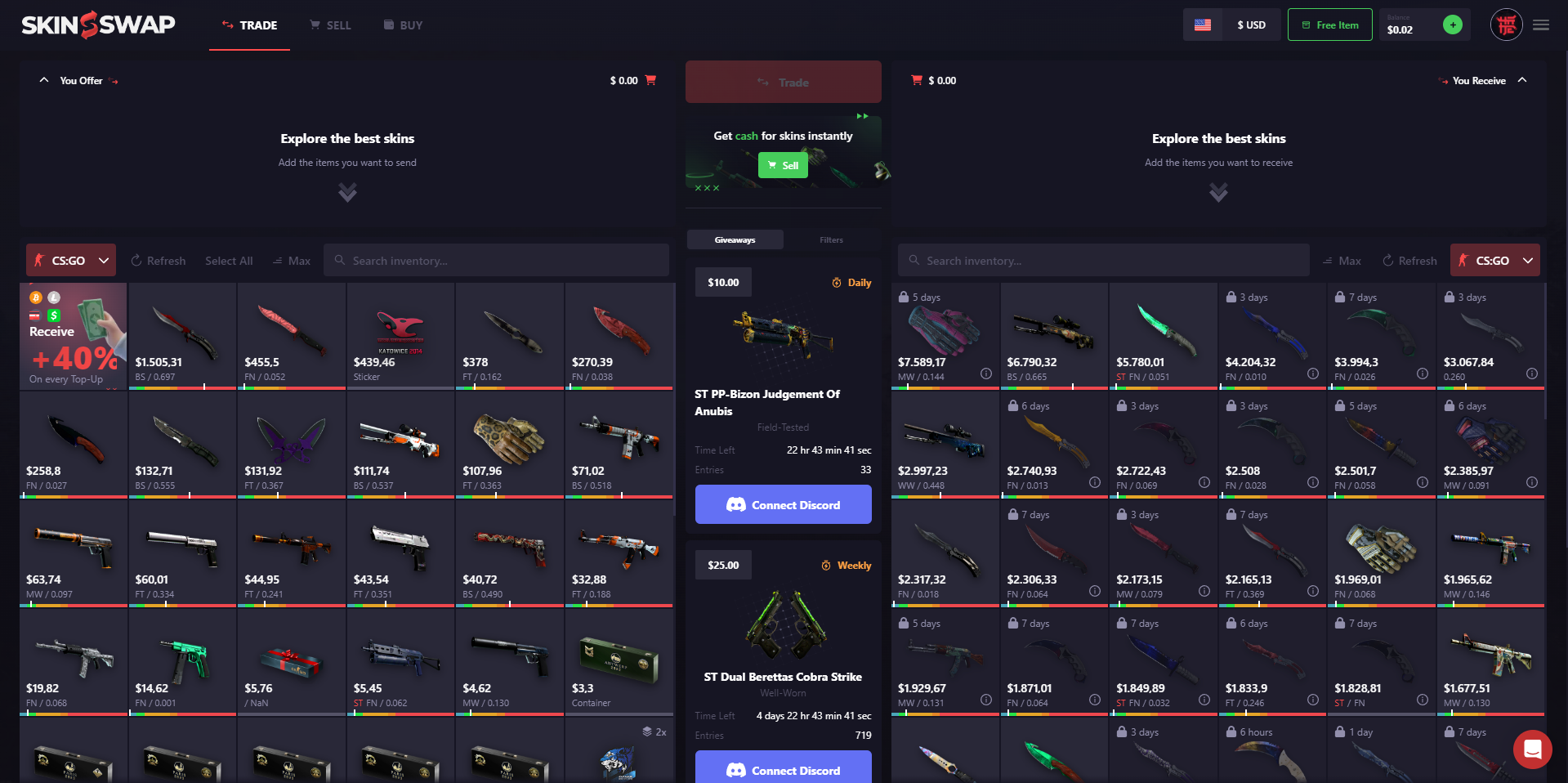 Today, we'd like to present you SkinSwap - a legitimate trading website that also offers you some other awesome features such as an instant item selling feature for real money, the option to purchase items and frequent giveaways!