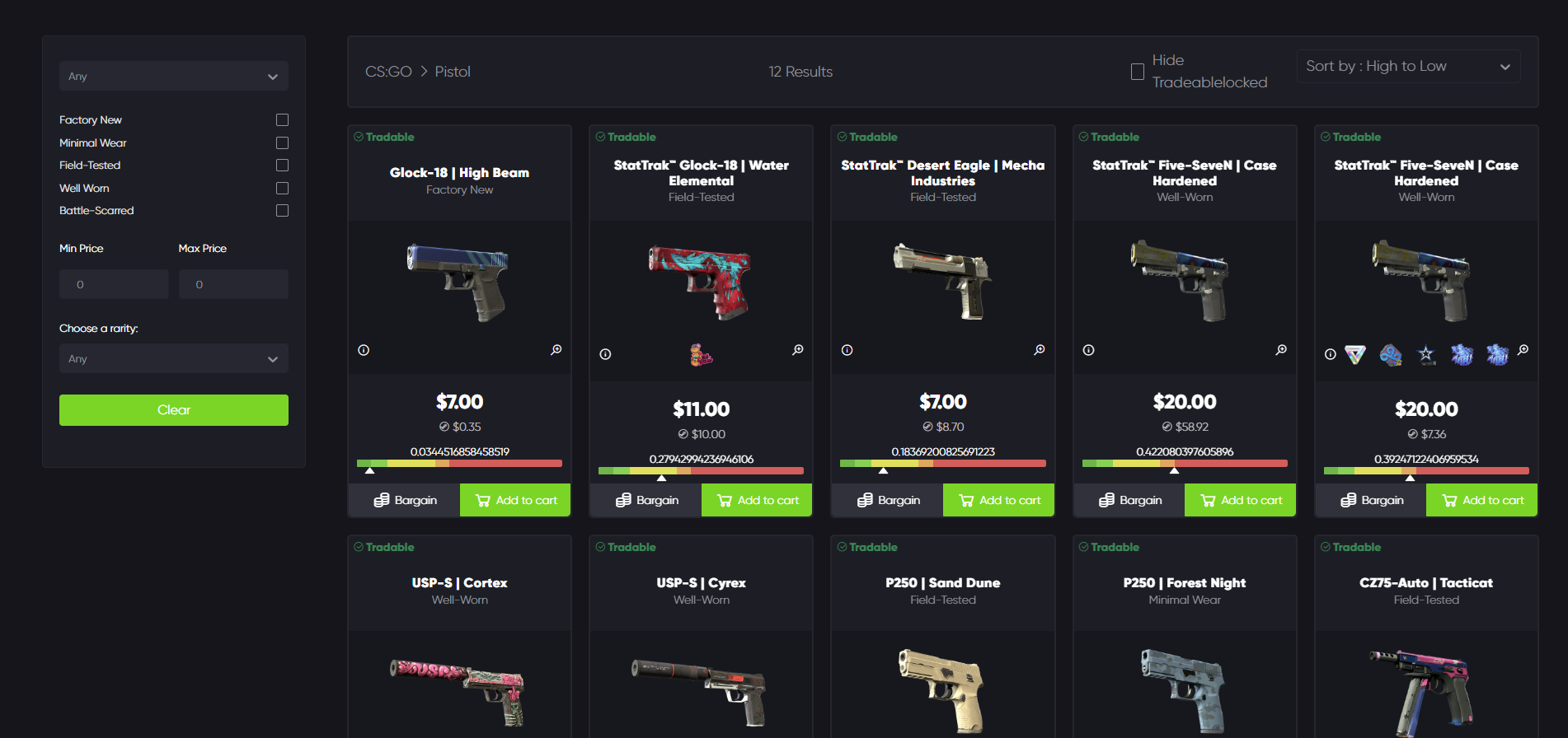 Additionally, their website also comes with all appropriate filtering features such as looking for a specific price range, weapon exterior or weapon type: